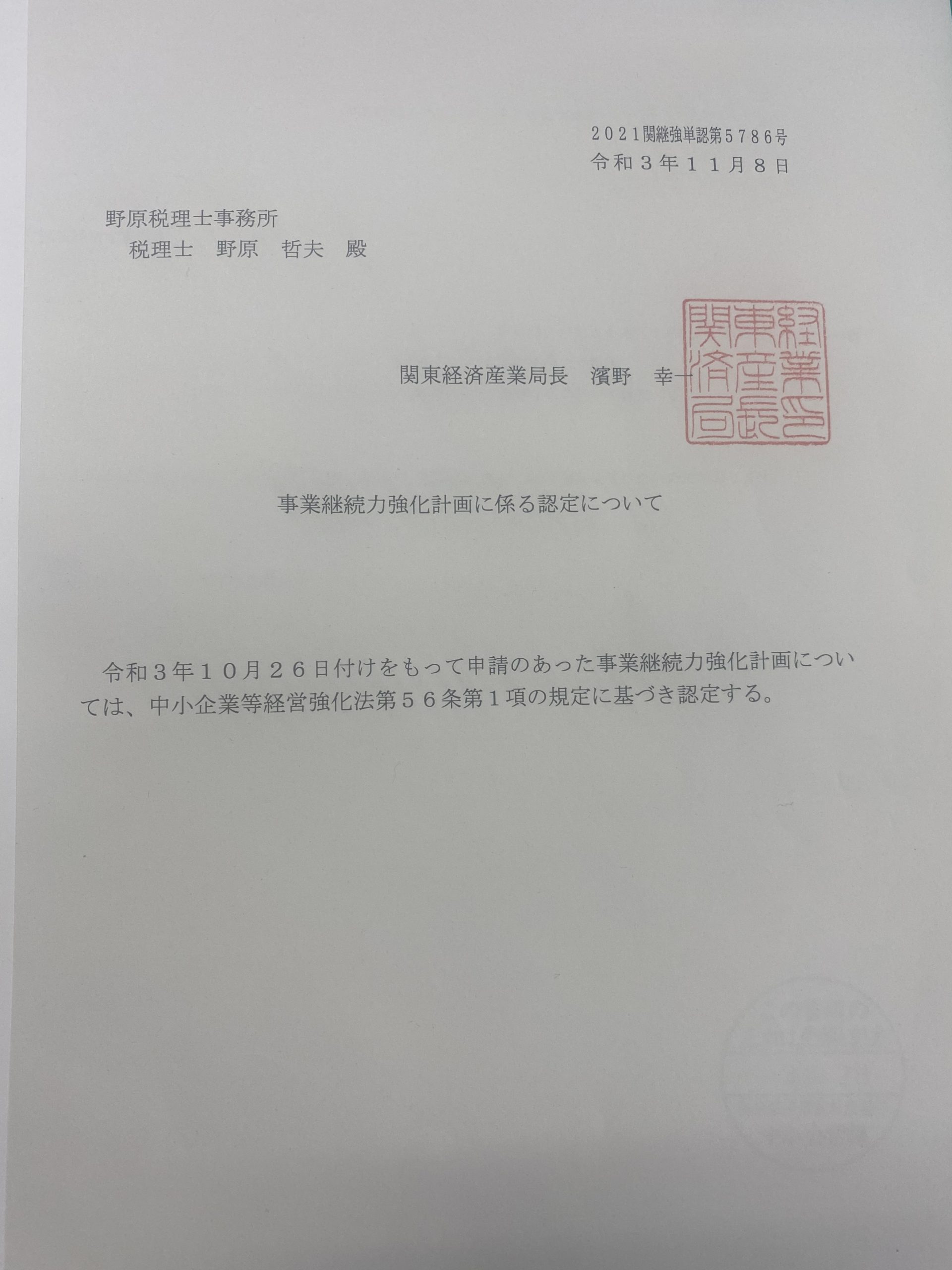「事業継続力強化計画」の認定を受けました👏(パチパチ)