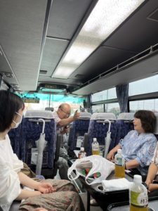 全員が向かい合って座れるサロン型バスをチャーターしてくれました🚍