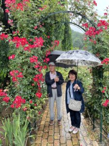 雨に濡れるバラやあじさいを楽しみながらゆっくり園内を散策🐾